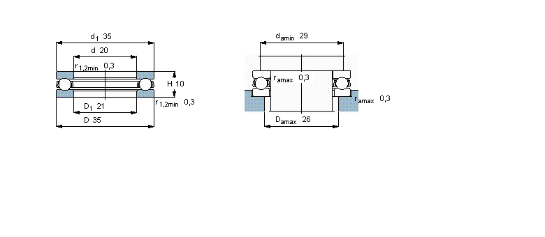 系列:推力球軸承, 單向