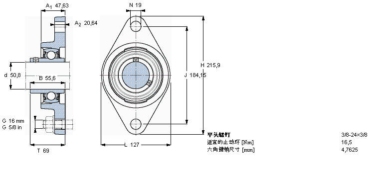 系列:用于高溫的Y-軸承單元,帶法蘭單元,橢圓軸承座, 英制軸承