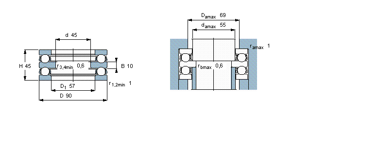 | 45 | 90 | 45 | 61,8 | 146 | 5,4 | 0,26 | 2800 | 4000 | 1,10 | 52211 | |