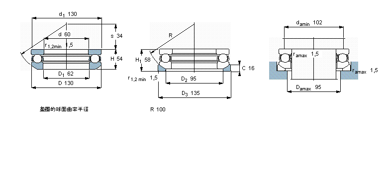 型號:53412M      品牌:SKF      系列:推力球軸承, 單向,帶球面軸承座墊圈