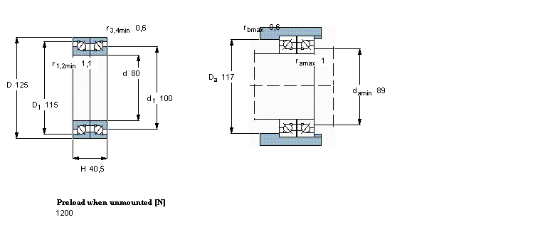 | 雙向, 精密,高精度軸承, BTM .. B design, 40°, preload B | |||||||||||